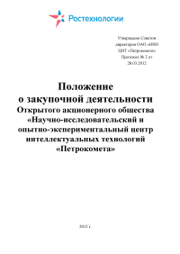 Положение о закупочной деятельности акционерного общества «Научно-исследовательский и опытно-экспериментальный центр интеллектуальных технологий «Петрокомета»